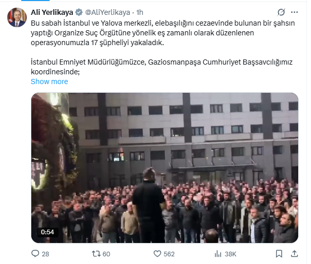 İçişleri Bakanı Ali Yerlikaya, operasyonun ardından yaptığı açıklamada, vatandaşların huzur ve güvenliğini tehdit eden hiçbir organize suç örgütüne izin verilmeyeceğini vurgulayarak, “Bu şehir eşkIyalarının vatandaşlarımıza zarar vermesi engellendi. Bizim mücadelemiz; vatandaşlarımızın huzurunu ve güvenliğini sağlamak içindir.” ifadelerini kullandı.