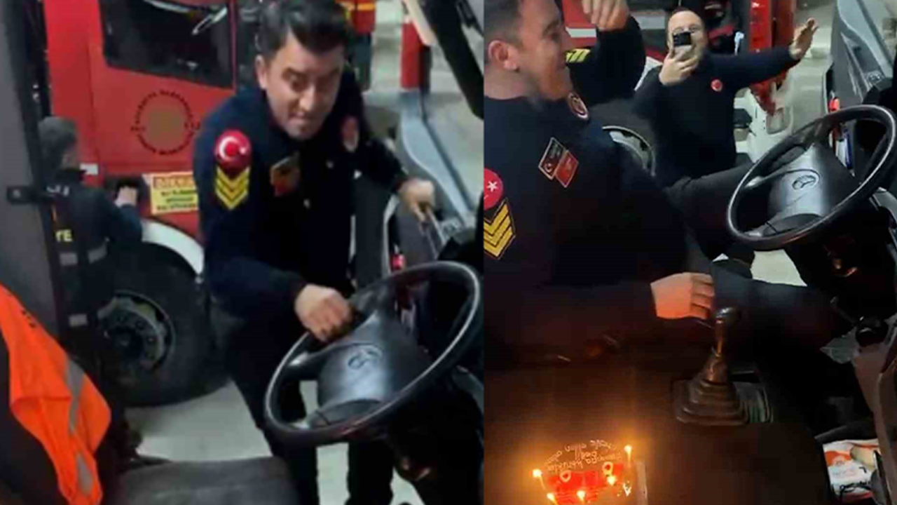 Duyduğu adres karşısında panikleyen ve "Anam anam benim ev" diyerek itfaiye aracına koşan Özer, sürücü koltuğuna geçmek için kapıyı açtığında sürprizle karşılaştı. Direksiyon başında yanan mumlarla süslenmiş doğum günü pastasını gören Özer, kısa süreli şaşkınlığın ardından rahat bir nefes aldı.