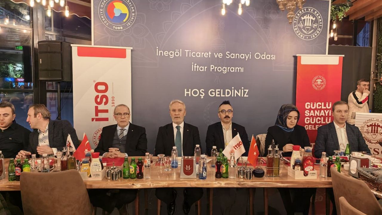 Yemeğin ardından açıklama yapan İTSO Başkanı Yavuz Uğurdağ, "Sizleri şahsım adına sevgi, saygıyla ve muhabbetle selamlıyorum. Tekrardan Allah kabul etsin iftar programımıza hoş geldiniz. Ramazan’ın aşağı yukarı ortasına geldik. Artık 16-17. günlerdeyiz. Valla çok şükür şehrimizde güzel bir Ramazan eda ediyoruz. Kazasız belasız çok şükür. Bu noktada da çok kıymetli Kaymakamımıza, Emniyet Müdürümüze çok teşekkür ediyoruz. Özellikle 2 konudan bahsetmek istiyorum. Bu sene itibariyle İnegöl Ticaret Sanayi Odası Eğitim ve Kalkınma Vakfı aracılığıyla kurulduğu günden itibariyle Allah’a çok şükür sanayicimizin, üyelerimizin destekleriyle mesleki eğitimde eğitim gören kardeşlerimize olmak üzere sonradan bir kısım üniversite öğrencimize destek vermeye çalışıyoruz. Ulaşım desteği sağlamaya çalışıyoruz. Allah’a çok şükür sayı itibariyle 1.000 sayısına ulaştık. Yani bunun 700 tanesi mesleki eğitimde eğitim gören öğrencilerimiz, 250 tanesi de üniversite eğitimi alan öğrencilerimiz. Bu noktada bu konuya özellikle temas etmek istedim. Çünkü Ramazan ayındayız. Zekat ayındayız, hayır ayındayız ve vakfımız da hayırlarınıza tabii ki bu noktada talip ama öncelikle senelerdir desteğini esirgemeyen halkımıza destek veren öğrencilerimizin okumasına katkı sağlayan tüm bağışçılarımıza teşekkür etmek istiyorum. Konjonktür itibarıyla savaşın ortasındayız. Bugün savaşın yanlış hatırlamıyorsam 12 günündeyiz ve yakın coğrafyamızdaki bu olumsuz tavırla karşı karşıyayız. Yakın coğrafya dediğimizde işte savaşın ortasında yer alan Amerika Birleşik Devletleri-İsrail, hemen yanı başımızda Irak, Suriye, Arabistan, Birleşik Arap Emirlikleri kadar derken bizim ihracat yapmış olduğumuz ticaret yapmış olduğumuz ülkelerden bahsediyoruz. Bu noktada biraz sıkıntı yaşıyoruz. Bugün itibariyle değerlendirdiğimizde konteynerlerimiz yola çıkamıyor maalesef veya yola çıkan konteynerlerimiz yerine ulaşamıyor. Gemide problem var ve gönderdiğimiz ürünlerin gittiği ülkeye ve gittiği şehre ulaşabilme problemi var. Bu noktada sanayicimiz çok sıkıntı yaşıyor. Ceza ödemek zorunda kalıyoruz. Bunlar sanayicimiz için ihracatçımız için olumsuz şeyler. İnşallah en kısa zamanda bu kargaşa sürecinin bir an ortadan kalkıp son sürecine barış sürecine geçilir. Biliyorsunuz ki yakın coğrafyaya yapmış olduğumuz ihracatı artırarak devam etme politikası yürütüyoruz. İhracat yapmadığımız ülkelere, bölgelere gitmek için de programlar projeler gerçekleştiriyoruz. Herkesin bildiği üzere TAFES Amerika’da bir şirket kuruluşu gerçekleştirdi. Bir yıldır faaliyetini sürdürüyor. Savaşla karşı karşıya kaldığımızda bu projenin bu adımın ne kadar önemli olduğunu bir kez daha ortaya çıkmış oldu. Valla çok şükür yapmış olduğumuz çalışmalar neticesinde buradan da bir müjdeyi vermek istiyorum. Özellikle Amerika Birleşik Devletleri, Meksika ve Panama olmak üzere geçen ay içerisinde bu 2 ülkeye yeni 2 ülkeye birçok firmamızın ürününün satışını gerçekleştirdik ve sevkiyatını gerçekleştirdik. Allah’a çok şükür bugün itibariyle Meksika’da da Panama’da İnegöl mobilyası satılır duruma geldi. En yakın zamanda da inşallah bu 2 ülkede İnegöl mobilyası showroomu planlıyoruz, inşallah onu da gerçekleştireceğiz. Bu vizyona katkı sağlayan varsa ben İnegöl kucağına sanayi meclisi ve maddi manevi desteğini esirgemeyen meclis üyelerine teşekkür etmek istiyorum. MODEF şirketine ve yönetim kuruluna teşekkür etmek istiyorum, inşallah bu projemiz İnegöl dünyanın en büyük pazarına açılma imkanı sahip olacak. Bunun yanında Güney Amerika ülkelerindeki ihracatımızı gerçekleştireceğiz.. Tekrardan ramazanını tebrik ediyorum. Hayırlı mübarek olmasını temenni ediyorum." dedi.