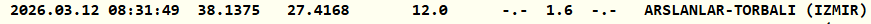 Kandilli Rasathanesi İzmir Torbalı'da meydana gelen depremin saat 08.31'de gerçekleştiğini belirtti. Verilere göre deprem 1.6 büyüklüğünde meydana geldi. Depremin derinliği ise 12 kilometre olarak ölçüldü.