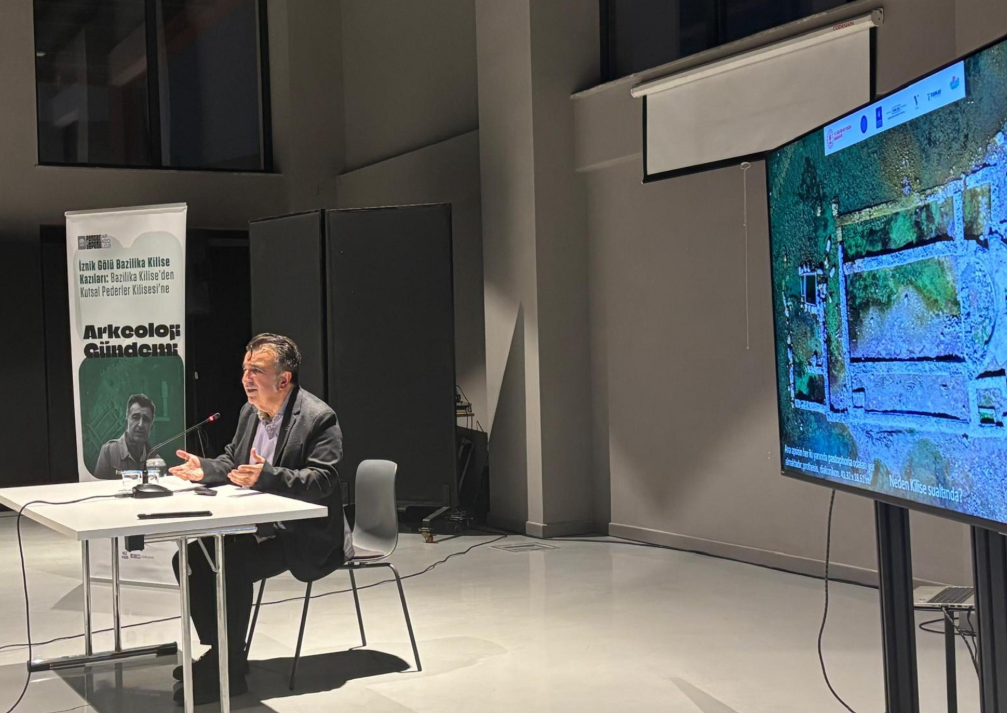 Nilüfer Belediyesi’nin tarih ve arkeoloji meraklılarını bir araya getirdiği Pancar Deposu’ndaki Arkeoloji Gündemi söyleşileri devam ediyor. Bu ayki buluşmada Bursa Uludağ Üniversitesi Arkeoloji Bölümü Anabilim Dalı Başkanı Prof. Dr. Mustafa Şahin, 2014 yılında bir hava fotoğrafıyla tesadüfen keşfedilen İznik Gölü’ndeki tarihi bazilikayı ve kentin tarihsel katmanlarını anlattı. Etkinlikte, su altındaki yapının Hristiyanlık dünyası için bir dönüm noktası sayılan Birinci İznik Konsili ile olan bağı güncel veriler eşliğinde ele alındı.