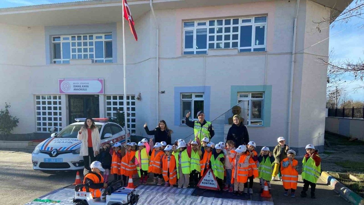 Gölpazarı İsmail Kara Anaokulu’ndaki öğretmen ve öğrenciye jandarma tarafından düzenlenen eğitime İlçe Kaymakamı Alparslan Sözen ve İlçe Milli Eğitim Müdürü Turgut Akagündüz katıldı. ’Eğitimde Trafik Işık ve İşaretleri’, ’Emniyet Kemeri Kullanımı’ konuları hakkında öğretmen ve öğrenciler bilgilendirilirken, branda trafik parkurunda akülü araba ile uygulamalı olarak faaliyet icra edildi.