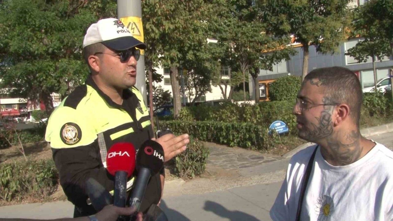 İstanbul’un Kadıköy ilçesinde trafik polisleri tarafından motosiklet ve elektrikli bisikletlere yönelik gerçekleştirilen denetimlerde kurallara uymayan sürücülere ceza yağdı. Ceza uygulanan bir genç ise “Allah devletimize zeval vermesin, bol bol ceza yazsınlar.” dedi.