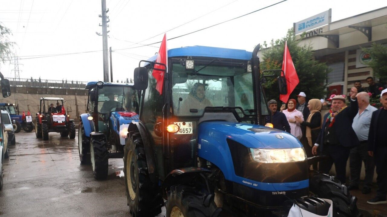 Dünya Çiftçiler Günü sebebiyle kadın çiftçiler traktörleriyle konvoy yaptı. Şehir merkezine inen kadın çiftçiler, yürüyüş yolundan geçti. traktör üstünde gören vatandaşlar şaşkına döndü.