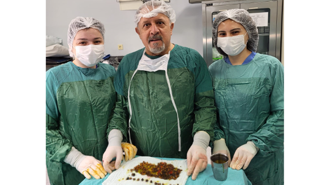 Manisa’nın Turgutlu ilçesinde yaşayan 75 yaşındaki kadın karın ağrısı, hazımsızlık, şişkinlik ve mide bulantısı şikayetleriyle Salihli ilçesindeki özel bir hastanede Genel Cerrahi Uzmanı Op. Dr. Bekir Yasa’ya başvurdu. Yapılan tetkiklerde hastanın safra kesesinde çok sayıda taş bulunduğu tespit edildi.