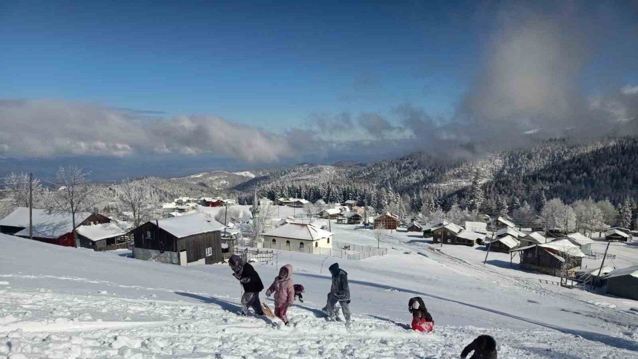 Sakarya’da bin 725 rakımlı Dikmen Yaylası’nda karın keyfini çıkaran çocuklar, kızaklarıyla kayarak gönüllerince eğlendi.