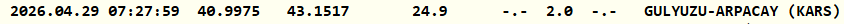 Kandilli Rasathanesi Kars'ın Arpaçay ilçesinde 2.0 büyüklüğünde deprem meydana geldiğini duyurdu. Merkezi Arpaçay olan deprem, saat 07.27'de 27.9 kilometre derinlikte kaydedildi.