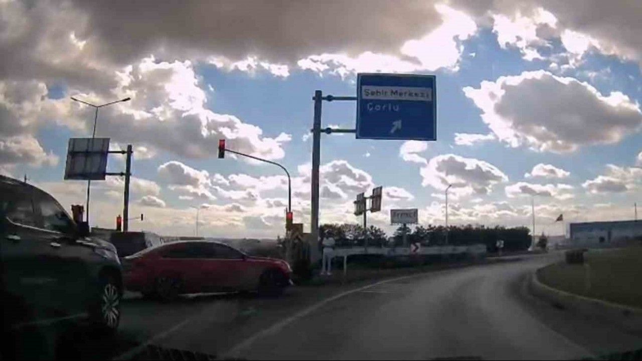 Olay, Kapaklı-Çerkezköy istikameti Yünsa Kavşağı ışıkları mevkinde meydana geldi. Seyir halindeki bir otomobilin önüne ışıklarda kural dışı dönüş yapan başka bir otomobil geçti. Önüne geçen araç dolayısıyla 2 çocuğun bulunduğu otomobil kaza tehlikesi atlattı. Çerkezköy girişindeki trafik ışıklarında yan yana gelen iki otomobil arasında sözlü tartışma yaşandı. İki araç arasında yaşanan olay, otomobil kamerasınca anbean kaydedildi.