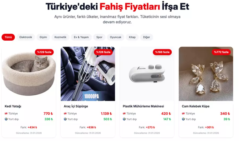 Hürriyet Partisi tarafından hayata geçirilen site, vatandaşların gönderdiği ürünlerin Türkiye'deki satış fiyatı ile yurt dışındaki fiyatını yan yana koyarak aradaki farkı yüzdesel olarak hesaplıyor. Sitede halihazırda elektronik, giyim, kozmetik ve spor gibi çok sayıda kategoride ürün bulunuyor.