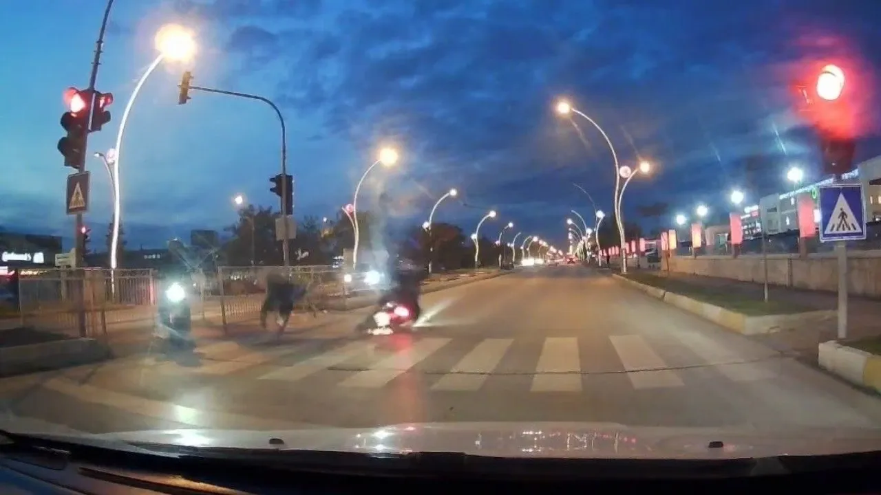 Kaza anı, kavşakta ışıkta bekleyen bir aracın kamerası tarafından kaydedildi. Görüntülerde çarpmanın ardından motosikletli ve yayanın yola savrularak sürüklendiği görüldü. Kazayla ilgili inceleme başlatıldı.