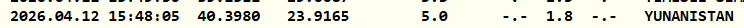 Kandilli Rasathanesi Yunanistan'da meydana gelen depremin büyüklüğünü 1.8 olarak açıkladı. Saat 15.48'de gerçekleşen depremin derinliği 5.0 kilometre olarak ölçüldü.