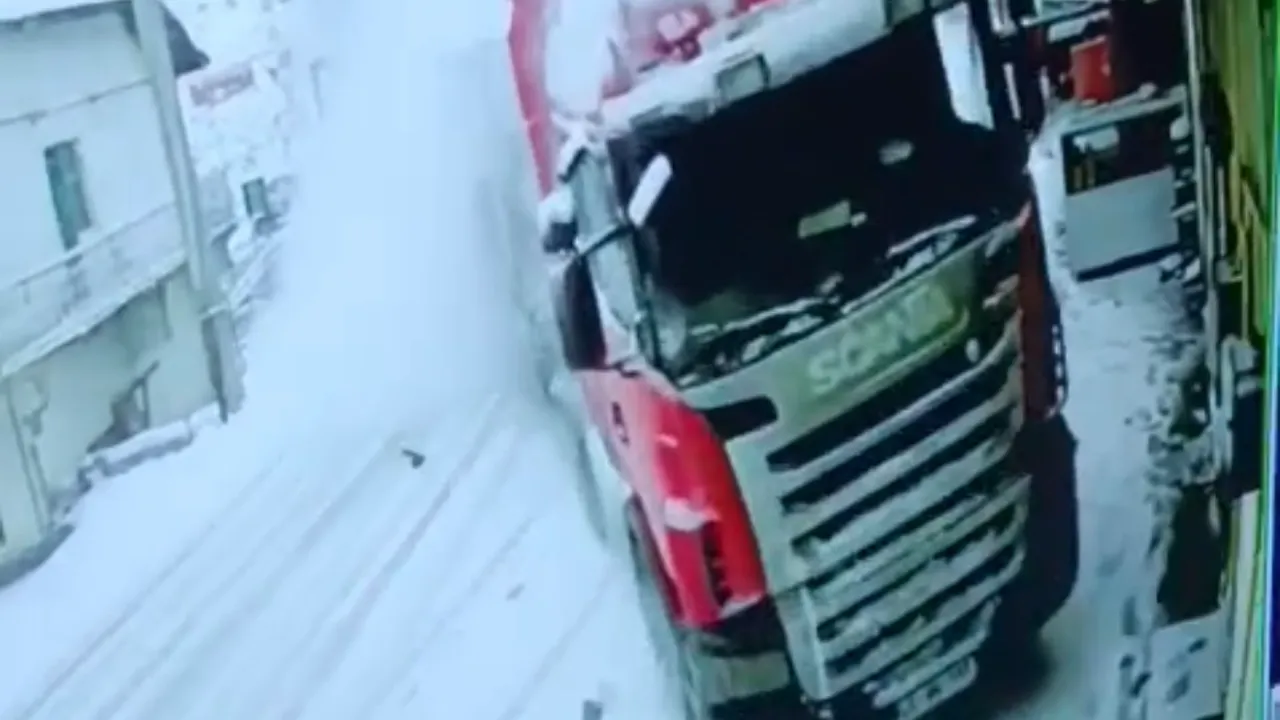Öte yandan tırın eve çarpma anı, güvenlik kamerası tarafından görüntülendi. Görüntülerde tırın hızla gelerek evin duvarına çarptığı anlar yer aldı.