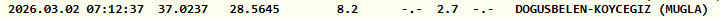 Sabah 07.12'de gerçekleşen deprem yerin 8.2 kilometre derinliğinde meydana geldi. Köyceğiz merkezli depremin 2.7 büyüklüğünde gerçekleştiği belirtildi.