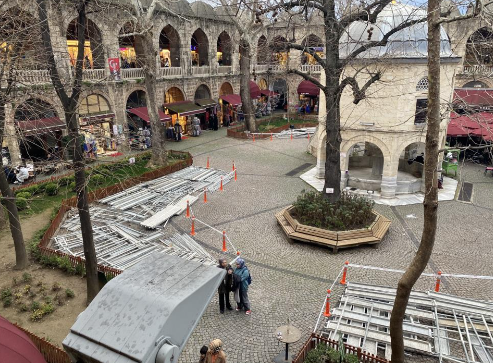 Kararın ardından han avlusuna masa ve sandalyeler geçici olarak yeniden yerleştirildi. Koza Han Yönetim Kurulu Başkanı Erdinç Şentürk ile Avukat Sena Deniz Ersoy, sürece ilişkin değerlendirmelerde bulundu.