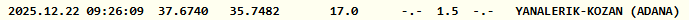 Yayımlanan verilere göre deprem saat 09.26'da 1.5 büyüklüğünde gerçekleşti. Kandilli Kozan merkezli depremin yerin 17 kilometre derinliğinde meydana geldiğini belirtti.