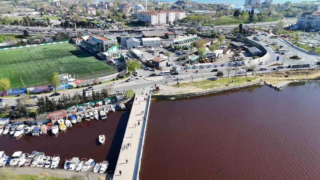 Son günlerde yurdun farklı noktalarındaki göl ve denizlerde suyun renk değiştirmesi gündem olurken benzer bir olay da İstanbul'daki Küçükçekmece Gölü'nde yaşandı. Deniz ile gölün buluştuğu anlan da suyun rengi kırmızıya dönerken, çevredeki vatandaşlar kirlilik olabileceği nedeniyle korku duyduklarını belirtti. Kırmızıya dönen su ise havadan dron ile görüntülendi.
