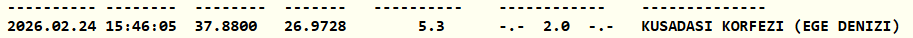 Kandilli Rasathanesi depreme ilişkin verileri resmi internet sitesi üzerinden duyurdu. Deprem saat 15.46'da 2.0 büyüklüğünde meydana geldi. Depremin derinliği 5.3 kilometre ölçüldü.