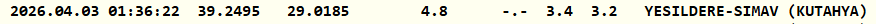 Kandilli Rasathanesi Kütahya'nın Simav ilçesinde 3.4 büyüklüğünde deprem meydana geldiğini duyurdu. Depremin derinliği 4.8 kilometre olarak ölçüldü.