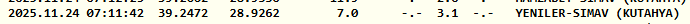 Resmi internet sitesi üzerinden paylaşılan bilgilere göre deprem saat 07.11'de 3.1 büyüklüğünde gerçekleşti. Kandilli Simav merkezli depremin yerin 7.0 kilometre derinliğinde gerçekleştiğini belirtti.