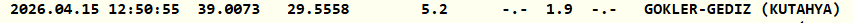 Kandilli Rasathanesi'nin verilerine göre deprem saat 12.50'de 1.9 büyüklüğünde gerçekleşti. Merkezi Gediz olan depremin derinliği 5.2 kilometre olarak ölçüldü.