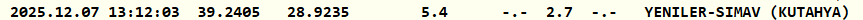 Resmi internet sitesi üzerindeki bilgilere göre deprem saat 13.12'de 2.7 büyüklüğünde meydana geldi. Kandilli Simav merkezli depremin yerin 5.4 kilometre derinliğinde gerçekleştiğini belirtti.