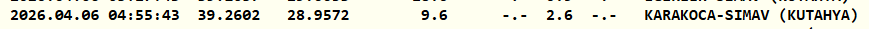 Kütahya'nın Simav ilçesinde 2.6 büyüklüğünde deprem meydana geldi. Kandilli Rasathanesi depremin yerin 9.6 kilometre derinliğinde gerçekleştiğini belirtti.