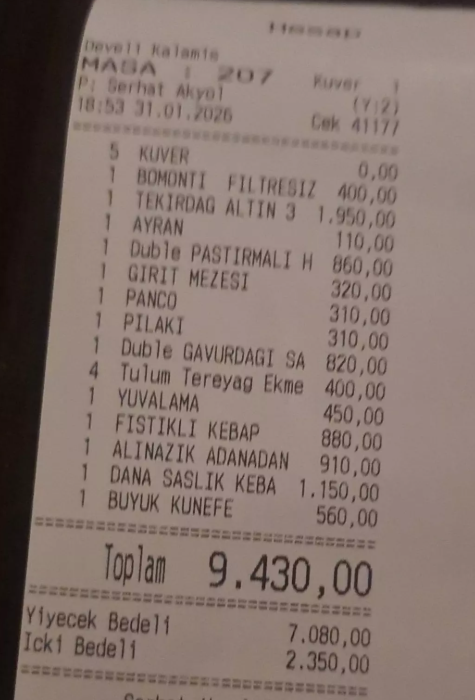 Artık kuver ve servis ücreti alamayan restoranlar, fiyatları diğer kalemlere yansıtmaya başladı. Hesapların 500-1000 TL daha artması bekleniyor. Kuver ücreti alınmayan bir işletmede gelen 9.430 TL'lik hesap dikkat çekti.