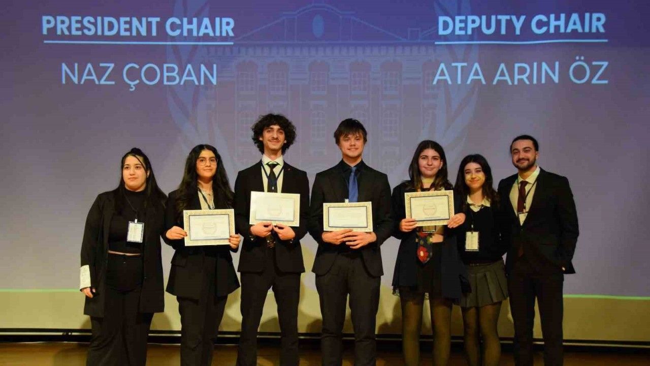 Gökkuşağı Lisesi öğrencileri, 23-24 Aralık tarihlerinde HASTRAIN Model Birleşmiş Milletler (MUN) konferansında önemli başarılara imza attı. Bölgenin dört bir yanından genç beyinleri bir araya getiren etkinlikte, 33 yetenekli öğrenci, sıra dışı performanslarıyla üç farklı kategoride birçok prestijli ödülün sahibi oldu.