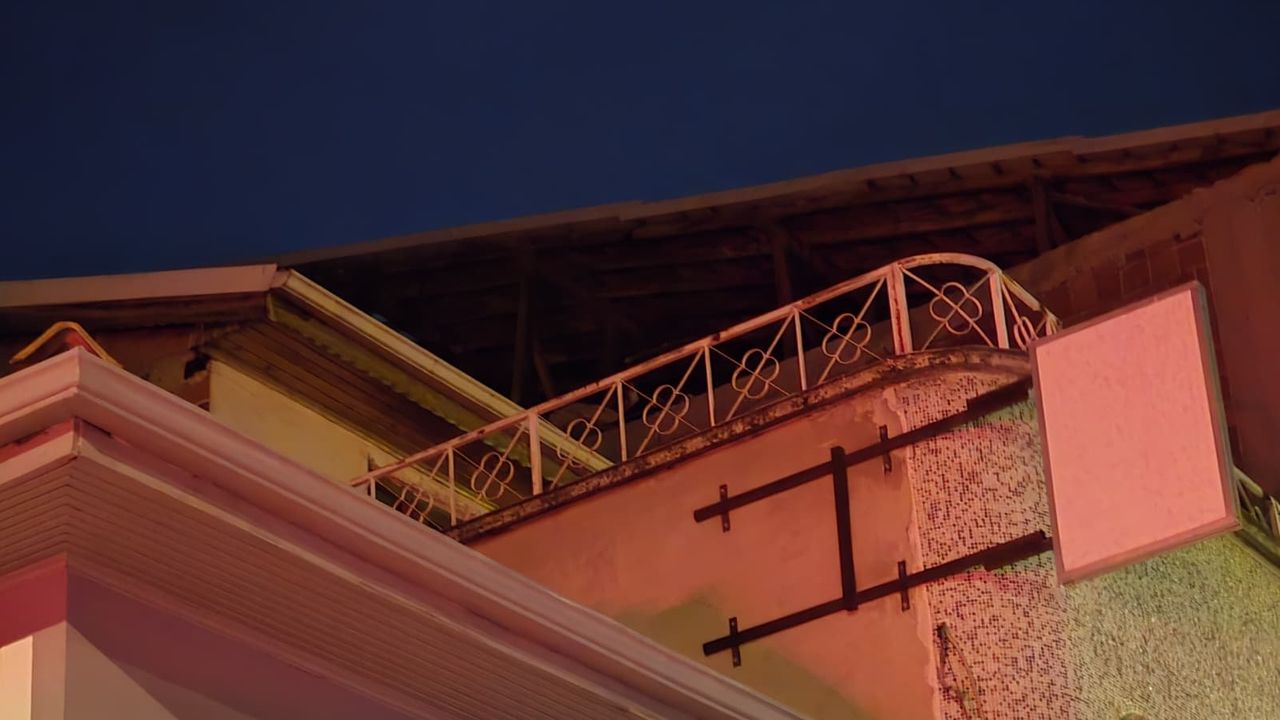 Ekipler, merdivenli araç yardımıyla yardımıyla çatıya çıkarak risk oluşturan molozları temizledi.