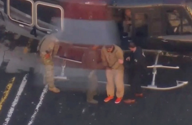 Eşiyle önlü arkalı olarak götürülen Maduro, helikoptere bindirildi. Helikopterin, Güney New York Eyalet Mahkemesi'ne doğru giderek Maduro'yu ABD kolluk kuvvetlerine teslim etmesi bekleniyor.