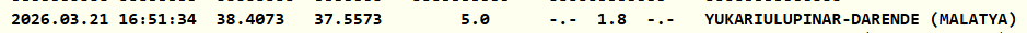 Kandilli Rasathanesi'nin açıkladığı bilgilere göre deprem saat 16.51'de 1.8 büyüklüğünde meydana geldi. Darende merkezli depremin yerin 5.0 kilometre derinliğinde gerçekleştiği belirtildi.