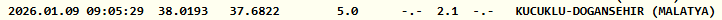Kandilli Rasathanesi paylaştığı verilerde depremin saat 09.05'te 2.1 büyüklüğünde meydana geldiğini belirtti. Doğanşehir merkezli depremin derinliği 5.0 kilometre olarak açıklandı.