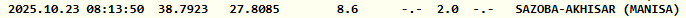 Kandilli Rasathanesi resmi internet sitesi üzerinden depremin 2.0 büyüklüğünde gerçekleştiğini belirtti. Akhisar merkezli deprem yerin 8.9 kilometre derinliğinde kaydedildi.