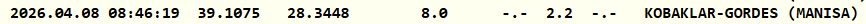 Kandilli Rasathanesi saat 08.46'da Manisa'nın Gördes ilçesinde 2.2 büyüklüğünde deprem meydana geldiğini duyurdu. Verilere göre depremin derinliği 8.0 kilometre ölçüldü.