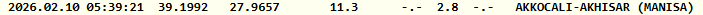 Yayımlanan listeye göre deprem saat 05.39'da 2.8 büyüklüğünde gerçekleşti. Kandilli, merkezi Akhisar olan depremin derinliğini 11.3 kilometre olarak açıkladı.