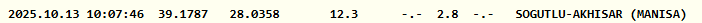 Kandilli Rasathanesi resmi internet sitesi üzerinden alınan bilgilere göre Manisa'da deprem meydana geldi. Yayınlanan son depremler listesinde depremin saat 10.07'de 2.8 büyüklüğünde gerçekleştiği belirtildi. Akhisar merkezli depremin derinliği 12.3 olarak ölçüldü.
