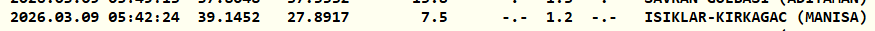 Manisa Kırkağaç'ta meydana gelen deprem saat 05.42'de gerçekleşti. Kandilli, yerin 7.5 kilometre derinliğinde meydana gelen depremin büyüklüğünü 1.2 olarak açıkladı.