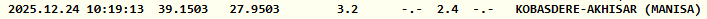 Kandilli Rasathanesi’nin verilerine göre, Manisa'nın Akhisar ilçesinde saat 10.19'da 2.4 büyüklüğünde bir deprem meydana geldi. Depremin 3.2 kilometre derinlikte gerçekleştiği belirtildi.