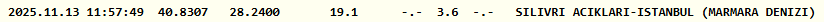 Kandilli Rasathanesi resmi internet sitesi üzerinden yayınladığı verilere göre, Marmara Denizi’nde Silivri açıklarında saat 11.57’de bir deprem meydana geldi. Depremin büyüklüğü 3.6, derinliği ise 19.1 kilometre olarak ölçüldü.