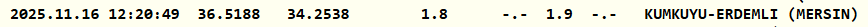 Kandilli'nin resmi internet sitesi üzerindeki bilgilere göre deprem 1.9 büyüklüğünde gerçekleşti. Erdemli merkezli deprem 1.8 kilometre derinlikte kaydedildi.