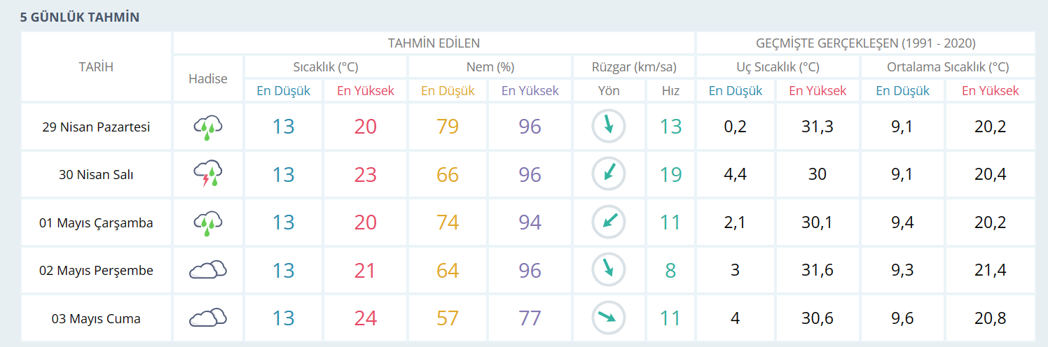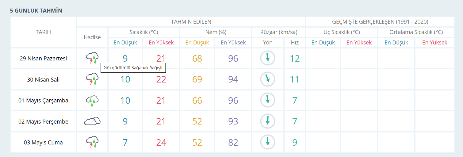 BURSA İÇİN 5 GÜNLÜK HAVA DURUMU TAHMİNİ