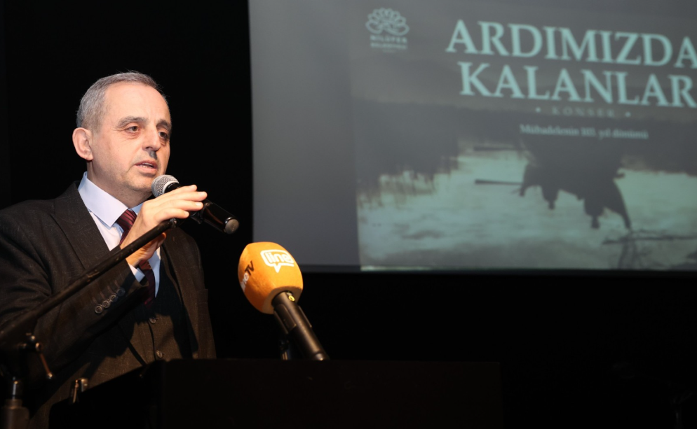 Konser öncesinde konuşan Nilüfer Belediye Başkanı Şadi Özdemir, tarihin hüzünlü ama bir o kadar da onurlu bir sayfasını birlikte anmak için toplandıklarını belirterek şunları söyledi: