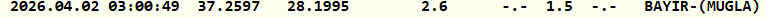 Kandilli Rasathanesi Muğla'nın Bayır ilçesinde 1.5 büyüklüğünde deprem meydana geldiğini duyurdu. Saat 03.00'da gerçekleşen depremin derinliği 2.6 kilometre ölçüldü.