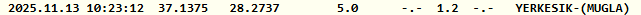 Kandilli Rasathanesi verilerine göre, Muğla'nın Yerkesik ilçesinde saat 10.23'de bir deprem meydana geldi. Depremin büyüklüğü 1.2, derinliği ise 5.0 kilometre olarak ölçüldü.