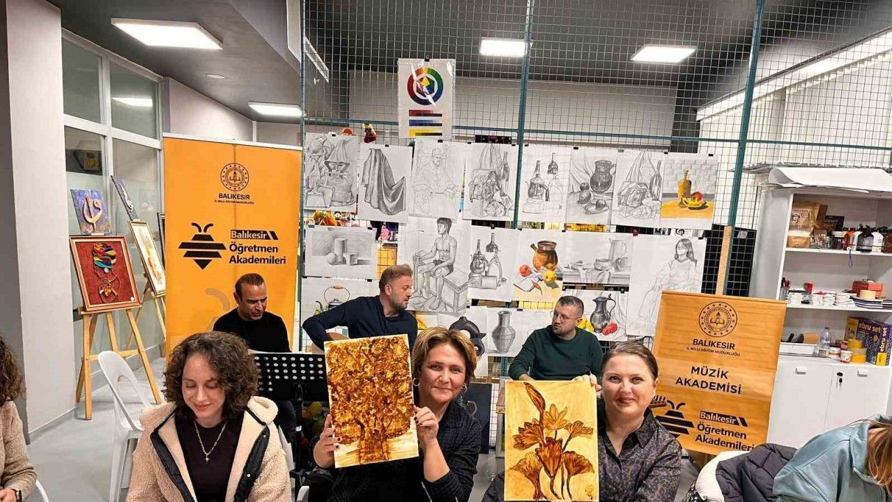 Kanun Sanatçısı Anıl İbrahim Yıldırım ve Bilgisayar Mühendisi ve Gitarist Taylan Sezer’in de enstrümanlarıyla hazır bulunduğu faaliyette canlı müzik eşliğinde öğretmenler görsel çalışmalarını oluşturmaya başladı. Önce kara kalemle başlayan çizimler kahve tonlarıyla renklenmeye başladı. Çalınan ve söylenen şarkılara da ara ara eşlik eden öğretmenler keyifli dakikalar yaşadı. Oluşturulan çalışmaların incelenmesi ve sunulmasının ardından fotoğraf çekimi ile faaliyet sonlandırıldı.