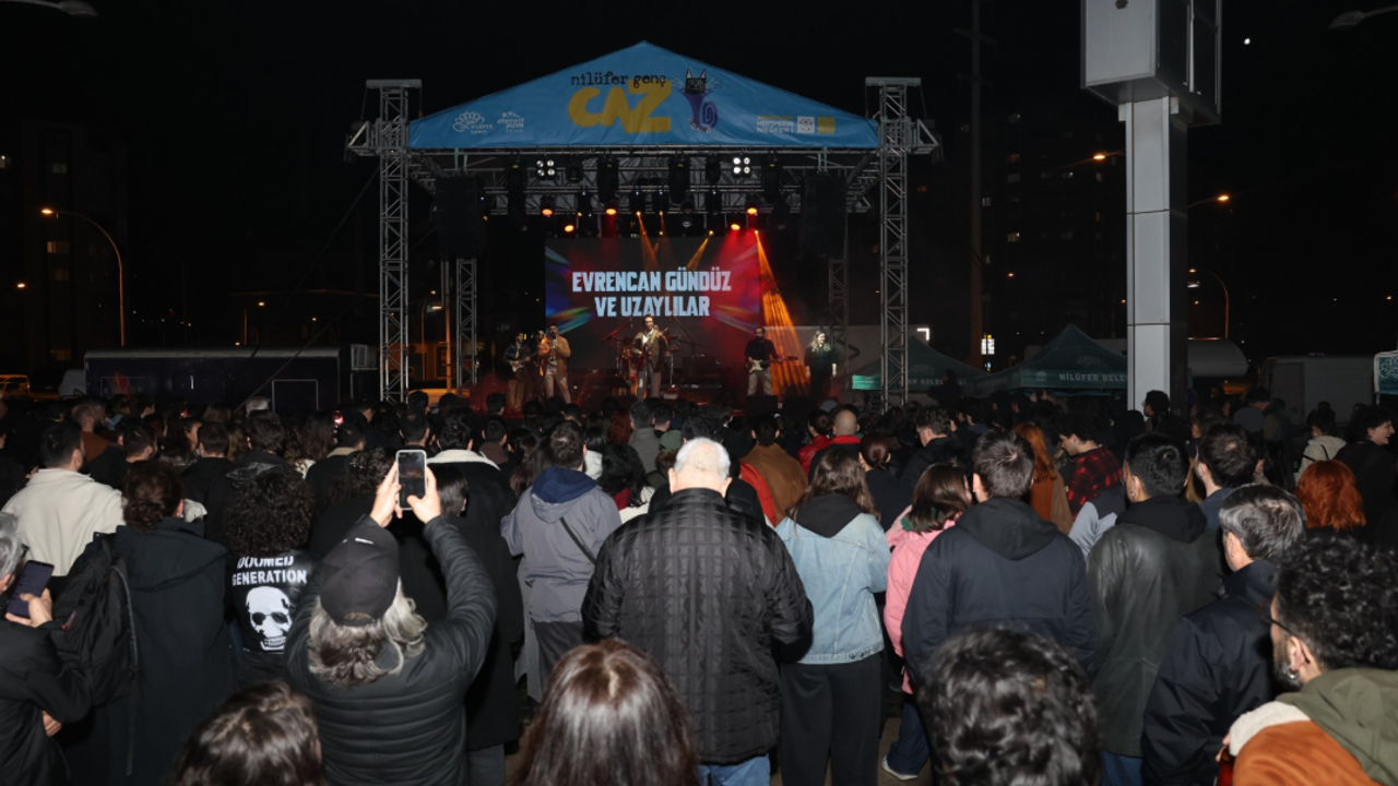 Nilüfer’de dört gündür devam eden ve 15’ten fazla sanatçının sahne aldığı Nilüfer Genç Caz konserleri, yoğun katılımlı bir finalle tamamlandı. Etkinliğin son gününde sahneye çıkan sevilen sanatçı Evrencan Gündüz ve grubu Uzaylılar, performanslarıyla izleyicilerden tam not aldı.
