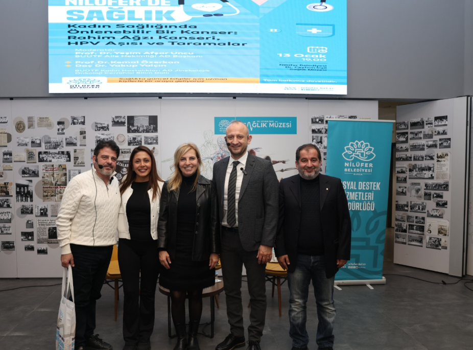 Nilüfer’de Sağlık Buluşmaları kapsamında “Kadın Sağlığında Önlenebilir Bir Kanser: Rahim Ağzı Kanseri, HPV Aşısı ve Taramalar” söyleşisi gerçekleştirildi. Nilüfer Belediyesi Dr. Ceyhun İrgil Sağlık Müzesi’nde moderatörlüğünü Bursa Uludağ Üniversitesi (BUÜ) Aile Hekimliği Ana Bilim Dalı Öğretim Üyesi Prof. Dr. Yeşim Afşar Uncu’nun yaptığı söyleşide, BUÜ Kadın Hastalıkları Jinekolojik Onkoloji Cerrahisi Bilim Dalı öğretim üyeleri Prof. Dr. Kemal Özerkan ve Doç. Dr. Yakup Yalçın konuk oldu.