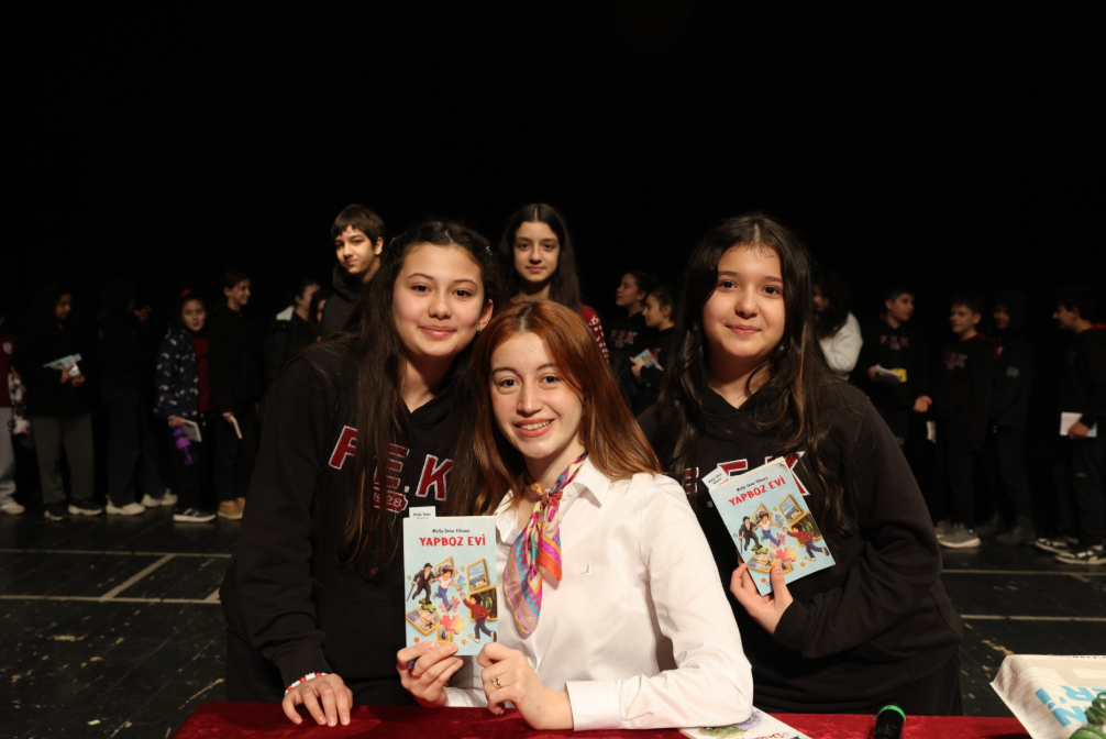 Yıllar önce üniversite sınavına aynı çatı altındaki Şiir Kütüphanesi’nde hazırlandığını belirterek söze başlayan Yılmaz, şimdi bir yazar olarak aynı mekanda çocuklarla buluşmanın mutluluğunu yaşadığını söyledi.