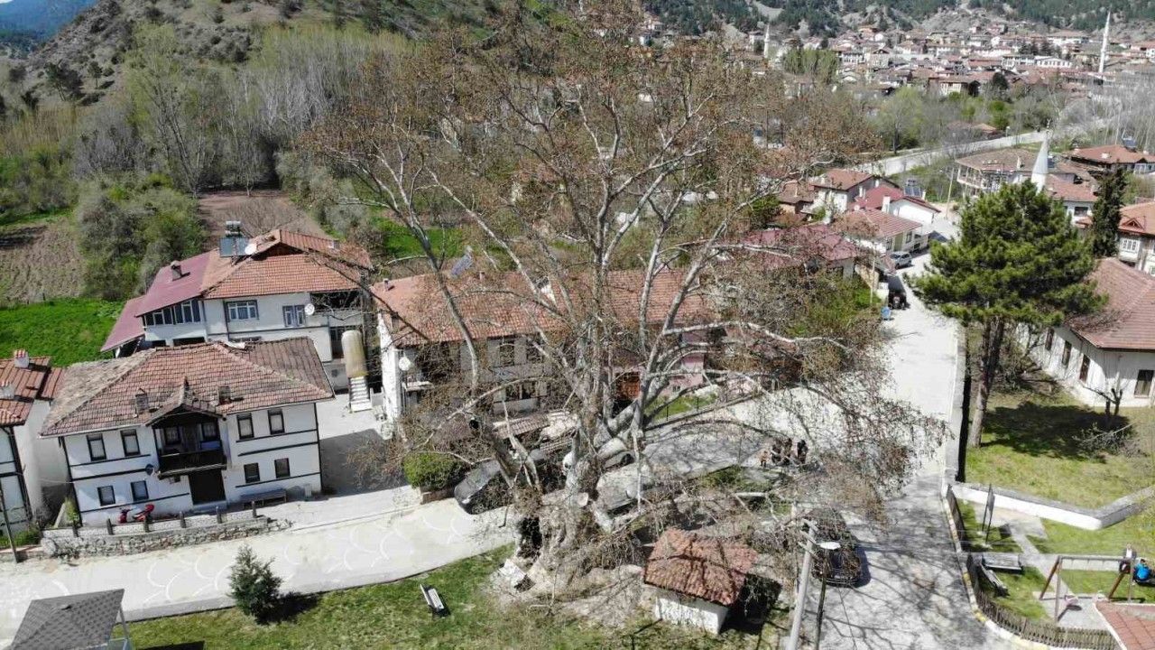 Osmanlının fethettiği yerlere iz niteliğinde diktiği çınar ağacı, Osmanlı evleriyle ünlü Sakarya’nın Taraklı ilçesinde 700 yıldır zamana meydana okuyor.