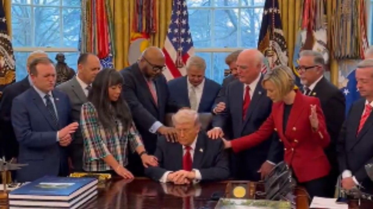 Trump’ın İletişim Danışmanı Margo Martin’in X hesabından paylaştığı görüntülerde, Trump’ın Oval Ofis’teki çalışma masasının arkasında oturduğu ve çevresinde dua eden bir grubun bulunduğu görüldü. Evangelist din adamlarının Trump’a dokunarak dua ettiği anlar dikkat çekti. Başkanlık Personel Ofisi Direktörü Dan Scavino’nun sosyal medya hesabından paylaştığı görüntülerde ise duada şu ifadelerin yer aldığı aktarıldı: